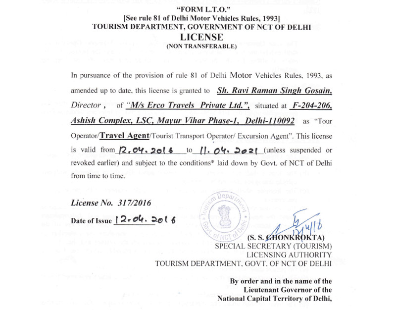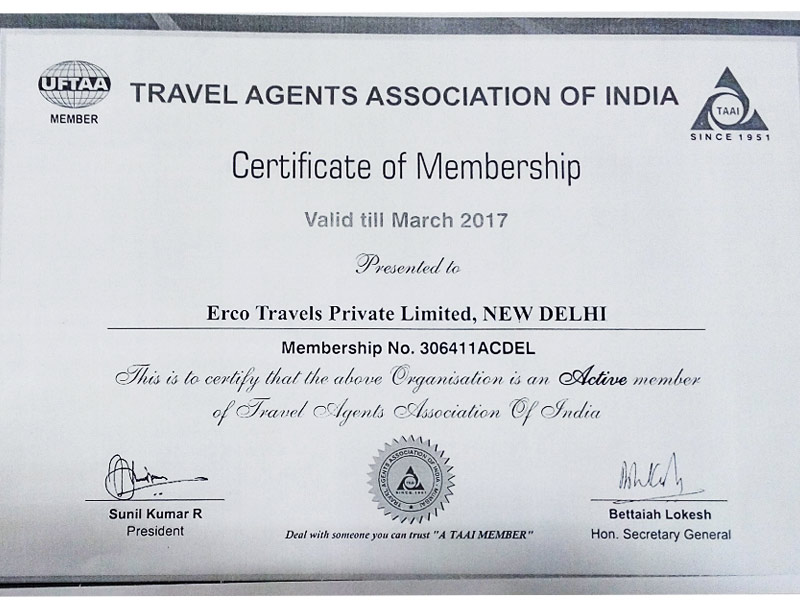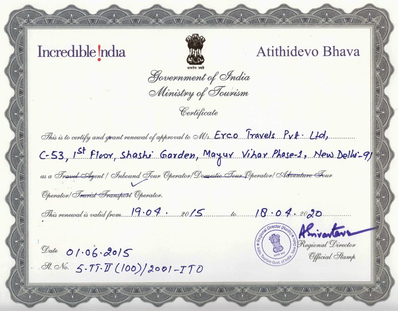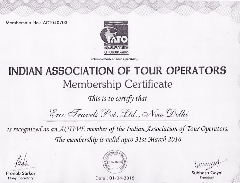Approved By Ministry of Tourism, Govt. of India – Reg. No. 5TT.II(100)/2001-ITO